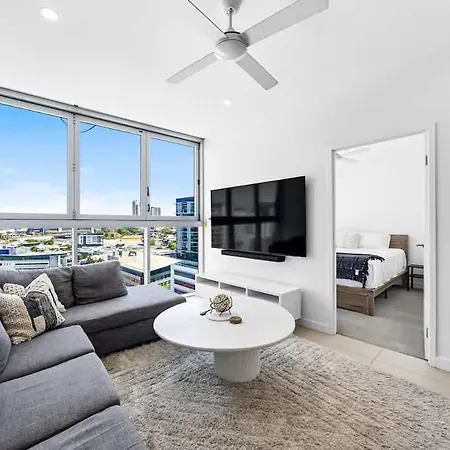 Este apartamento de 74 m², Top-Floor City View Stay At Newstead Towers Brisbane, es un lugar estupendo para alojarse en el barrio Newstead, a 3 km de la Casa consistorial. En este apartamento, ubicado a unos 10 minutos en coche del Parque Roma Street, los huéspedes pueden hacer ejercicio en un centro de fitness o relajarse en una piscina.